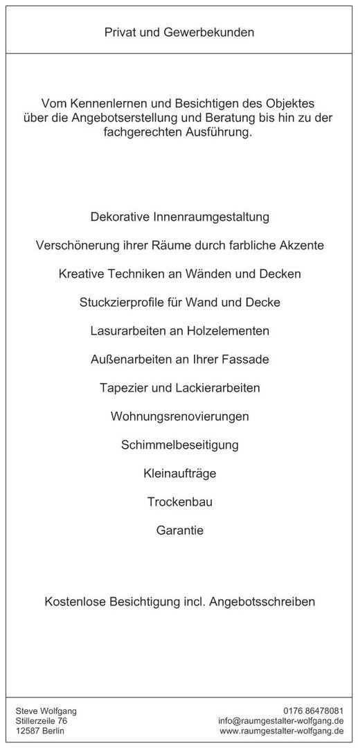 Unser Bestreben ist es, Ihnen verschiedene Techniken bzw. Ausführungen des Malerhandwerks vorzustellen und Sie individuell zu beraten.